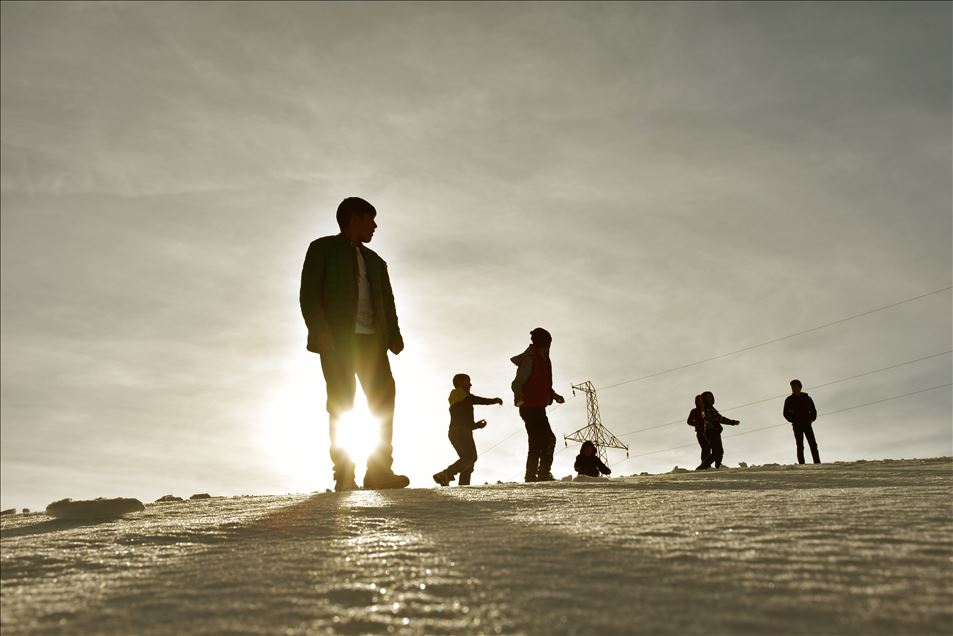 Kars'ın Sarıkamış ilçesinde bir araya gelen çocuklar güneşli havada karın keyfini çıkarttı. ( İsmail Kaplan - Anadolu Ajansı )İsmail Kaplan