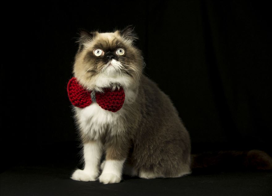 Sahiplerince yapılan el emeği göz nuru, birbirinden farklı kıyafet ve kostümlerle objektif karşısına geçen kediler, meraklı bakışlarıyla adeta bir model gibi poz verdi. Esnek bedenleri, hızlı refleksleri, güçlü koku alma duyusu ve hassas kulakları gibi bir çok ayırt edici özelliğe sahip kediler, genelde ev hayvanı olarak besleniyor ve insanlarla olan yakın arkadaşlıkları dikkati çekiyor. İran kırması "Ozi" adlı kedi de sahibinin ördüğü papyonla sempatik görüntüler ortaya çıkardı. ( Orhan Karslı - Anadolu Ajansı )Orhan Karslı