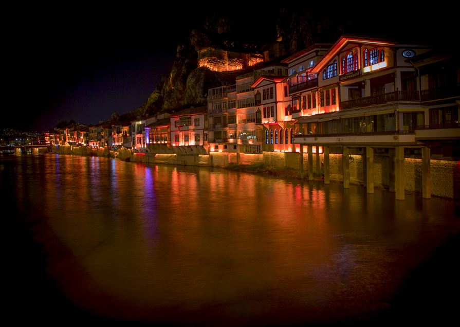 Amasya'nın ortasından geçen Yeşilırmak ve onun etrafında sıralanan evler, gece şehrin ışıkları ile görüntülendi. ( Halil Sağırkaya - Anadolu Ajansı )Halil Sağırkaya