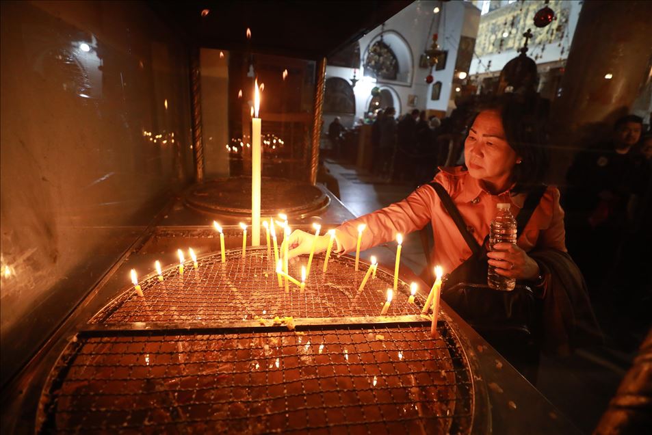 Batı Şeria'nın güneyinde Hazreti İsa'nın doğum yeri olarak bilinen Beytullahim'de Noel kutlamaları başladı. Dünyanın çeşitli yerlerinden gelen Hristiyanlar, Beytüllahim'deki kutlamaları izlemek ve ayine katılmak için Hazreti İsa'nın doğduğuna inanılan Doğuş (Mehd) Kilisesini ziyaret edip mum yakarak dua etti. ( İssam Rimawi - Anadolu Ajansı )İssam Rimawi