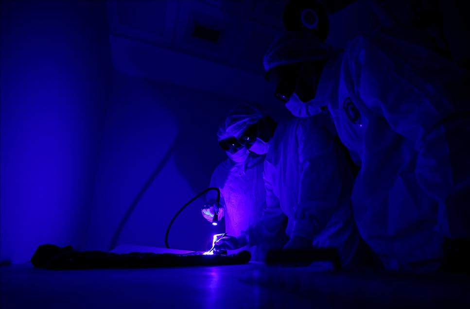 Bursa'da kolluk kuvvetlerince suç mahallerinde olay yeri, fail ve mağdur ilişkilerini ortaya koymak amacıyla elde edilen bulgular, Kriminal Polis Laboratuvarı'nda son teknoloji cihazlarla inceleniyor. ( Sergen Sezgin - Anadolu Ajansı )Sergen Sezgin