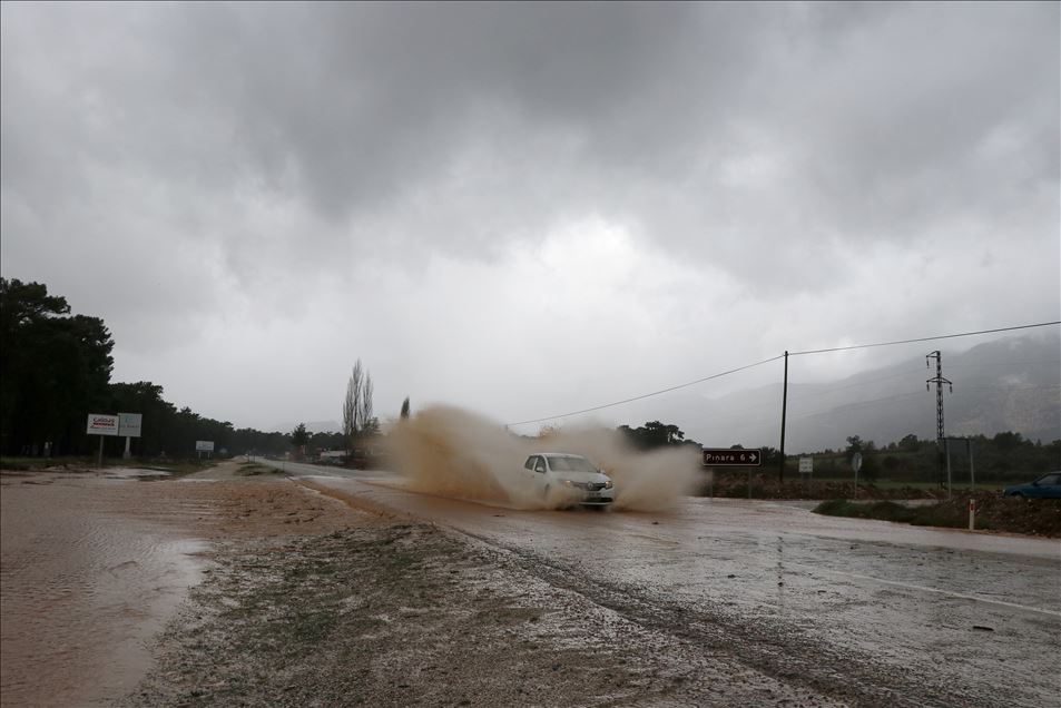 Muğla ve ilçelerinde etkili olan sağanak ve fırtına yaşamı olumsuz etkiliyor. Fethiye-Antalya kara yolunda oluşan su birikintisi nedeniyle sürücüler zor anlar yaşadı. ( Ali Rıza Akkır - Anadolu Ajansı )Ali Rıza Akkır