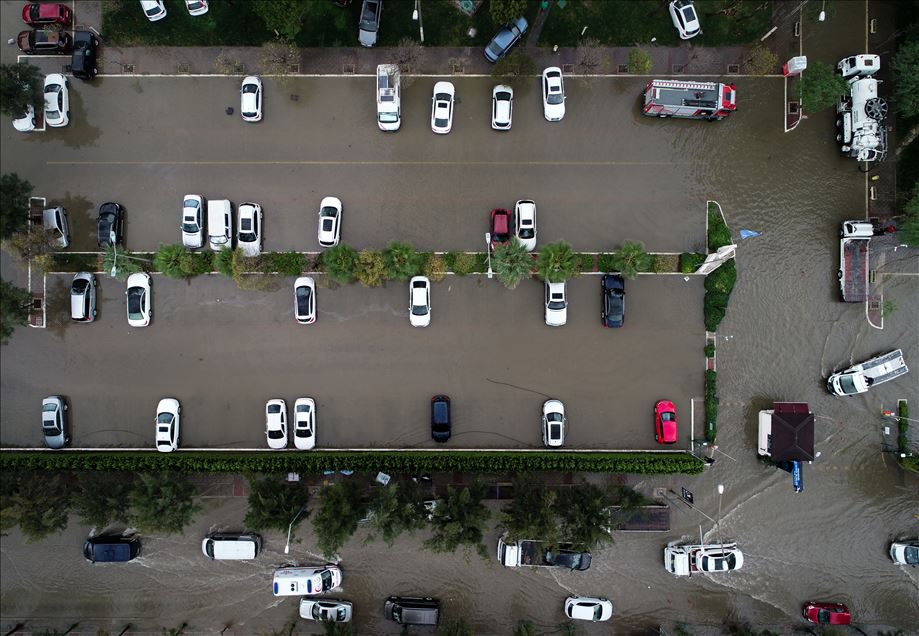 İzmir'de etkili olan sağanak nedeniyle bazı araçlar suda kaldı. Yağışın sürdüğü Karşıyaka ilçesinde su tahliye çalışması devam etti. ( Mahmut Serdar Alakuş - Anadolu Ajansı )Mahmut Serdar Alakuş