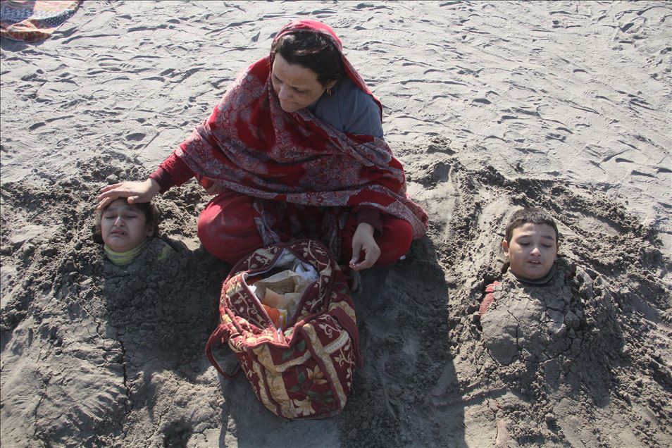 Güneş'in etrafında "ateş çemberi" oluşturan halkalı güneş tutulması Pakistan'ın başkenti Karaçi'de gözlemlendi. Bazı Pakistanlılar, şifa bulması ümidiyle çocuklarını kuma gömdüler. ( Sabir Mazhar - Anadolu Ajansı )Sabir Mazhar