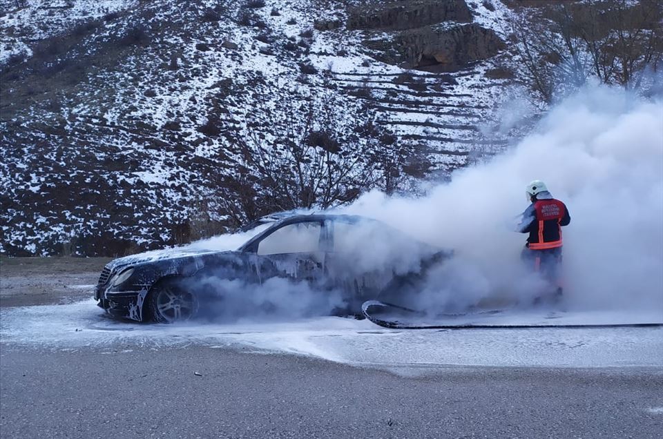 Malatya'nın Darende ilçesinde, seyir halindeyken yanan otomobil kullanılamaz hale geldi. ( itfaiye - Anadolu Ajansı )itfaiye