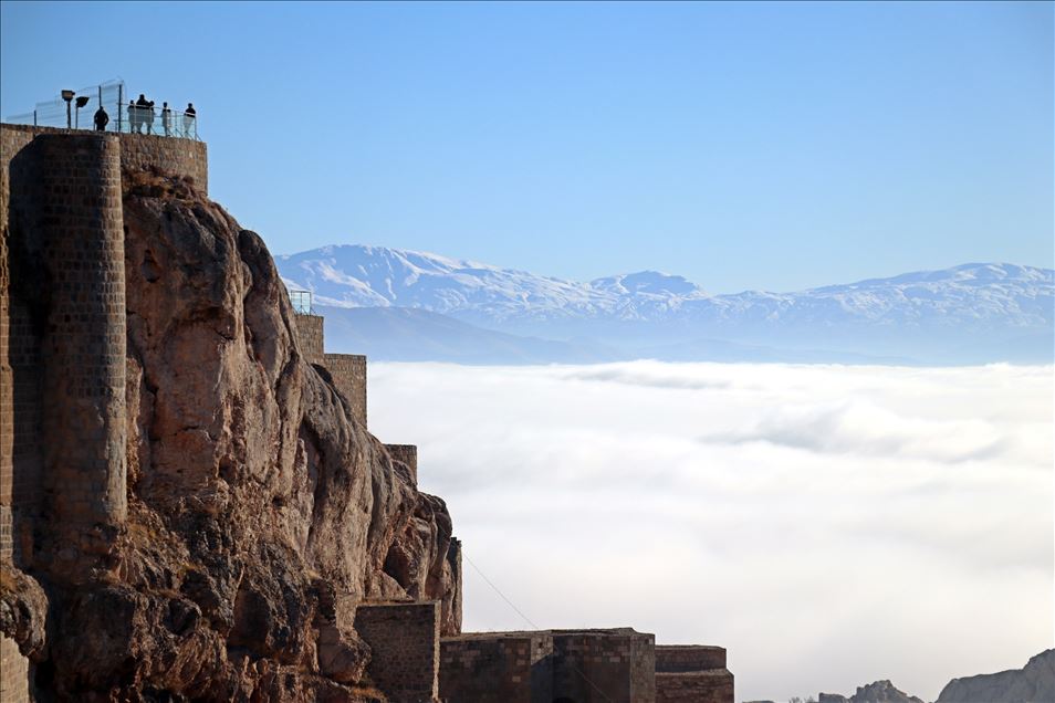 Elazığ'da 5 gündür kentin üstünü kaplayan, kentin yüksek kesimindeki tarihi Harput Mahallesi'nde tüm güzelliğiyle görülebilen sis tabakası, doğa severlere güzel manzaralar sunarken fotoğrafçılar için de eşsiz kareler oluşturuyor. Hafta sonunu fırsat bilip bu eşsiz manzarayı izlemek için Harput'a gelenler, tarihi mahallede ziyaretçi yoğunluğu oluşturuyor. ( İsmail Şen - Anadolu Ajansı )İsmail Şen