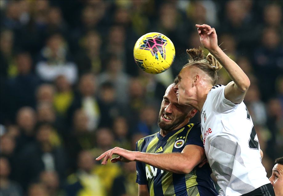 Fenerbahçe, Süper Lig’in 16. haftasında Beşiktaş ile karşılaştı. Fenerbahçeli oyuncu Vedat Muriqi (solda) ile Beşiktaşlı futbolcu Domagoj Vida (sağda), bir pozisyonda mücadele etti. ( Metin Pala - Anadolu Ajansı )Metin Pala