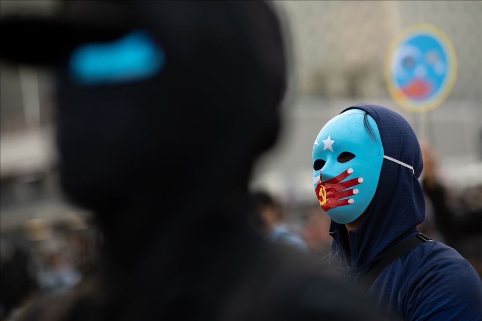 (Sadece Türkiye içinde kullanılabilir) Çin’in Hong Kong Özel İdari Bölgesi’nde hükümet karşıtı göstericiler, bu kez, Pekin yönetiminin Uygur Türklerinin çoğunlukta olduğu Sincan Uygur Özerk Bölgesi’ndeki politikalarına tepki göstermek için toplandı. ( EPA / EFE - JEROME FAVRE - Anadolu Ajansı )EPA / EFE - JEROME FAVRE