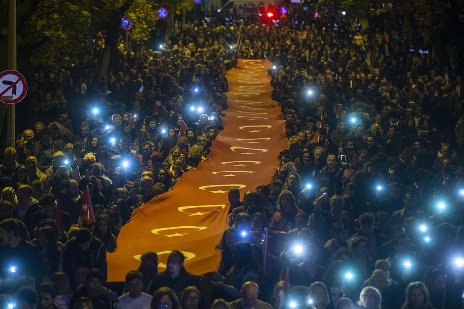 Türkiye Cumhuriyeti'nin kurucusu Gazi Mustafa Kemal Atatürk'ün vefatının 80'inci yılı dolayısıyla Ankara'da saygı yürüyüşü düzenlendi. Cumhuriyet Halk Partisi (CHP) Ankara İl Başkanlığının organize ettiği yürüyüş kapsamında, Güvenpark'ta toplanan vatandaşlar ellerinde taşıdıkları pankartlar eşliğinde Anıtpark'a yürüdü. ( Aytaç Ünal - Anadolu Ajansı )Aytaç Ünal