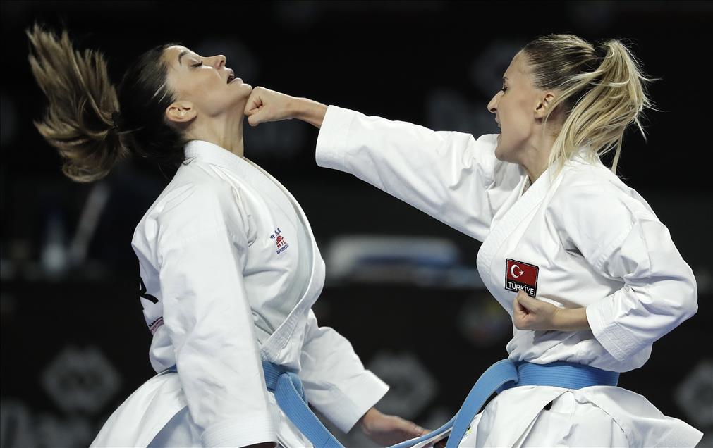 İspanya'nın başkenti Madrid'de düzenlenen 24. Dünya Karate Şampiyonası'nda kadınlar takım kata bronz madalya mücadelesinde Rabia Küsmüş (sağda) ve Dilara Eltemur (solda) Rusya takımı ile yarıştı.