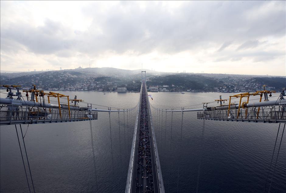 "Sağlıklı Yarınlara Koş İstanbul" temasıyla gerçekleştirilen Vodafone 40. İstanbul Maratonu başladı. Katılımcılar 15 Temmuz Şehitler Köprüsünden geçti.