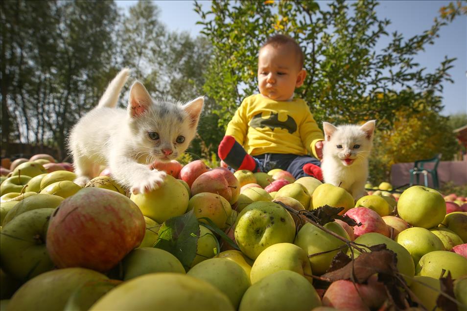 Sonbaharın gelmesiyle dallarda kalan son elmalar da toplanmaya başlandı. ( Özkan Bilgin - Anadolu Ajansı )Özkan Bilgin