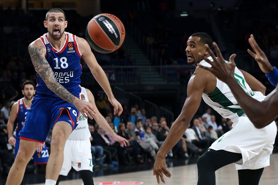 Basketbol THY Avrupa Ligi'nde Anadolu Efes ile Zalgiris Kaunas, Sinan Erdem Spor Salonu’nda karşılaştı. Bir pozisyonda Anadolu Efesli Adrien Moerman (18) ile Zalgiris Kaunas oyuncusu Brandon Davies (0) mücadele etti. ( Arif Hüdaverdi Yaman - Anadolu Ajansı )Arif Hüdaverdi Yaman