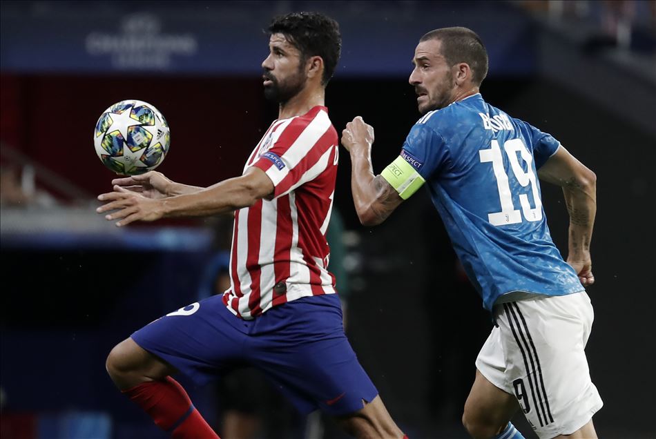UEFA Şampiyonlar Ligi D grubu ilk hafta maçında Atletico Madrid ile Juventus takımları, Madrid’deki Wanda Metropolitano Stadı'nda karşı karşıya geldi. Bir pozisyonda Atletico Madrid takımının futbolcusu Diego Costa (solda), rakibi Leonardo Bonucci (sağda) ile mücadele etti.