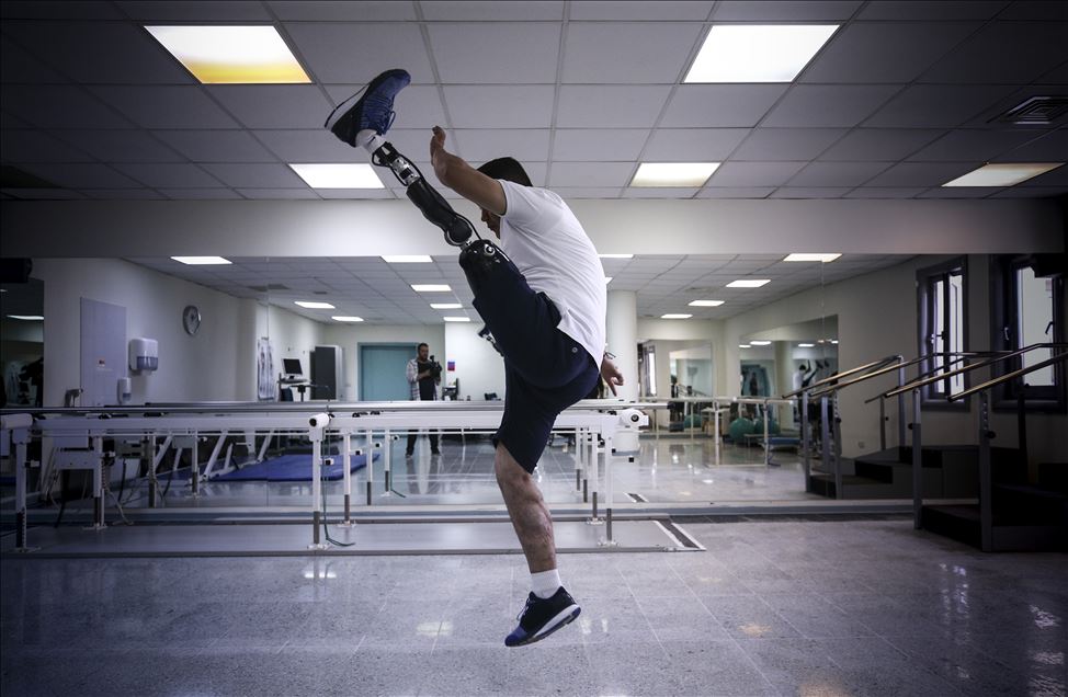 Bölücü terör örgütü tarafından tuzaklanan mayının patlaması sonucu gazi olan Uzman Çavuş Recep Variyenli, bir bacağını kaybetmesine rağmen spor tutkusunu sürdürüyor. ( Güven Yılmaz - Anadolu Ajansı )Güven Yılmaz