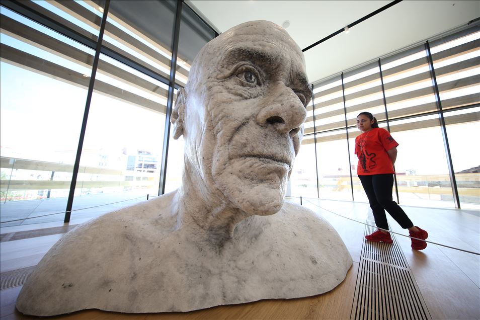 Eskişehir'in Odunpazarı ilçesinin tarihi evleriyle ünlü bölgesinde yaptırılan ve Cumhurbaşkanı Recep Tayyip Erdoğan tarafından açılan Odunpazarı Modern Müze'yi (OMM) bir haftada 4 bin 722 ziyaretçi gezdi. Fotoğrafta İtalyan sanatçı Guido Casaretto'nun ''Sevimsiz insanların yüzü birbirine benzer mi III'' adını verdiği eseri görülüyor. ( Ali Atmaca - Anadolu Ajansı )Ali Atmaca