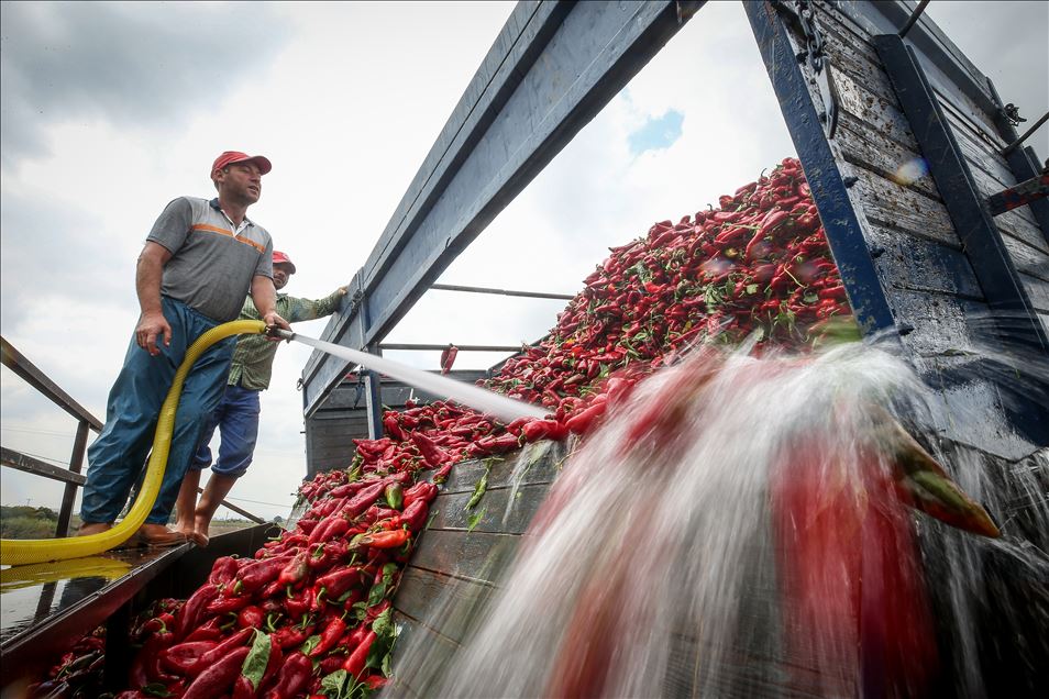 Türkiye'nin önemli kapya biberi üretim merkezlerinden Bursa'nın Karacabey Ovası'nda bu yıl rekolte ve fiyatlar üreticinin yüzünü güldürüyor. Mustafakemalpaşa ve Karacabey ilçesini kapsayan 32 bin dekar arazide ekilen kırmızı biberden bu yıl yaklaşık 100 bin ton rekolte bekleniyor. "Yağ biberi", "salçalık biber" ve "kırmızı biber" olarak da bilinen kapya biberi 1,50 liradan salça fabrikalarına, 1,80 liradan da Türkiye'nin çeşitli kentlerindeki hallere gönderiliyor. ( Sergen Sezgin - Anadolu Ajansı )Sergen Sezgin