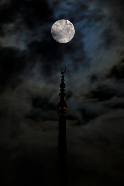 Samsun'da akşam saatlerinde beliren dolunay ile Hz. Hatice Camisi'nin alemi ile kesişen görüntüsü güzel görüntü oluşturdu. ( Veysel Altun - Anadolu Ajansı )Veysel Altun