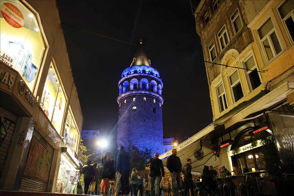 Galata Kulesi, 20 Kasım Dünya Çocuk Hakları Günü dolayısıyla mavi renkte ışıklandırıldı.