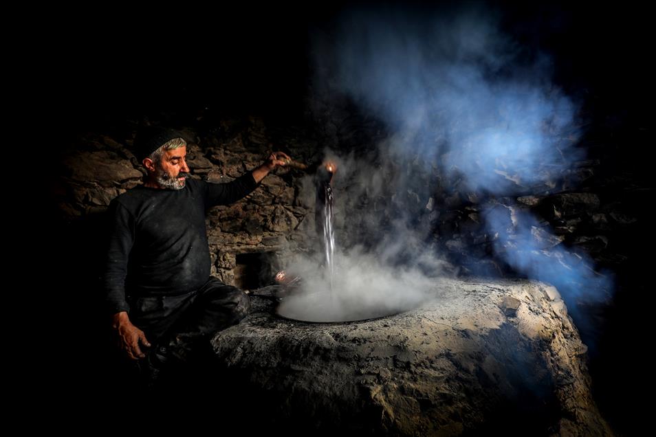Bitlis'in Hizan ilçesinde vatandaşlar, bağlarında yetiştirdikleri organik üzümlerle asırlardır dede ve babalarından kalma yöntemleri kullanarak pekmez üretiyor. Vatandaşlar, doğal maya olarak içine kattıkları kil toprak ile üzüm suyunu, yaktıkları odun ateşinde etrafını çamur ve taşlarla kapladıkları kazanlarda kaynatarak pekmez elde ediyor. ( Ali İhsan Öztürk - Anadolu Ajansı )Ali İhsan Öztürk