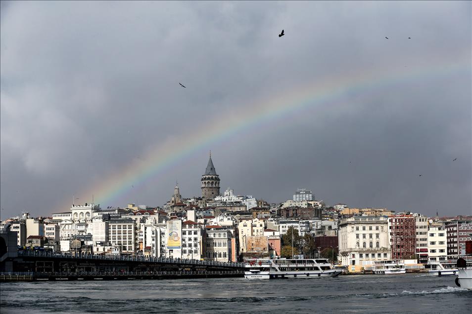 İstanbul'da yağışın ardından çıkan gökkuşağı, Galata Kulesi ile güzel görüntü oluşturdu. ( Veli Gürgah - Anadolu Ajansı )Veli Gürgah