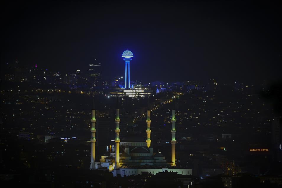 Ankara'nın simgelerinden Atakule, 20 Kasım Dünya Çocuk Hakları Günü dolayısıyla mavi ışık ile aydınlatıldı. ( Halil Sağırkaya - Anadolu Ajansı )Halil Sağırkaya