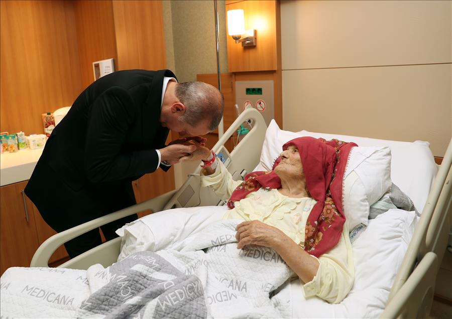 Türkiye Cumhurbaşkanı Recep Tayyip Erdoğan, 100 yaşındaki Nazmiye Balcı'yı tedavi gördüğü hastanede ziyaret etti. ( Kayhan Özer - Anadolu Ajansı )Kayhan Özer