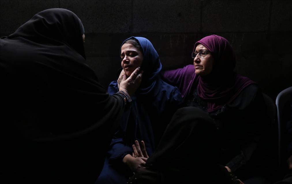 İsrail askerlerinin, abluka altındaki Gazze sınırında düzenlenen barışçıl "Büyük Dönüş Yürüyüşü" gösterileri sırasında şehit ettiği Muntasır Muhammed İsmail el-Baz (17) için Nusayrat Mülteci Kampı'nda cenaze töreni düzenlendi. Törende üzüntü yaşayan Baz'ın kız kardeşini (ortada), yakınları teselli etti. ( Ali Jadallah - Anadolu Ajansı )Ali Jadallah