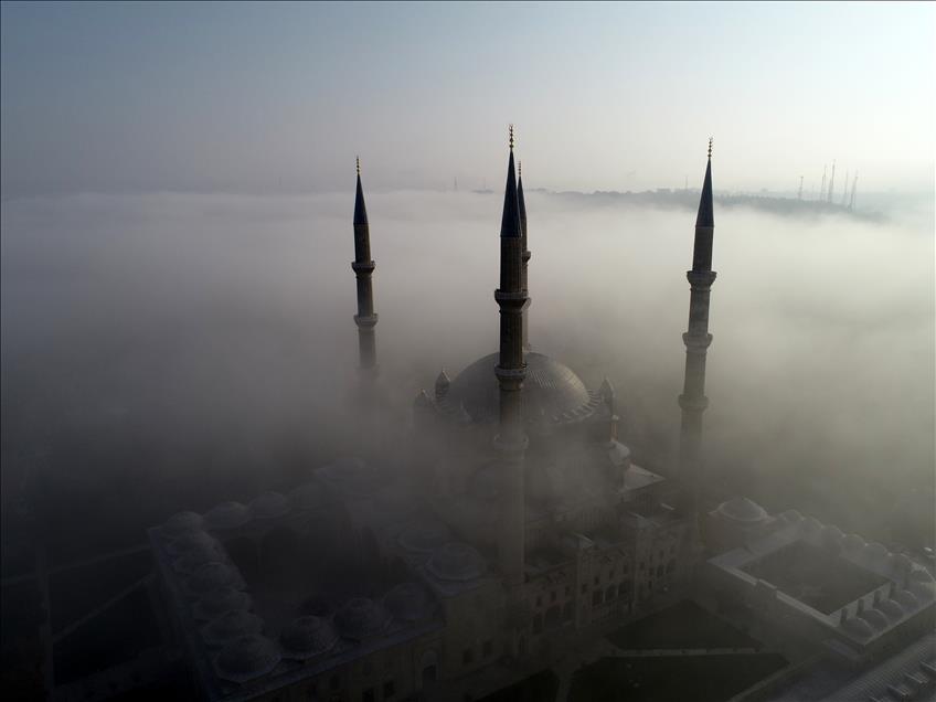 Mimar Sinan'ın ustalık eseri UNESCO Dünya Miras Listesi'nde yer alan Selimiye Camisi etrafında oluşan sis dolayısıyla güzel görüntüler oluşturdu. ( Cihan Demirci - Anadolu Ajansı )Cihan Demirci