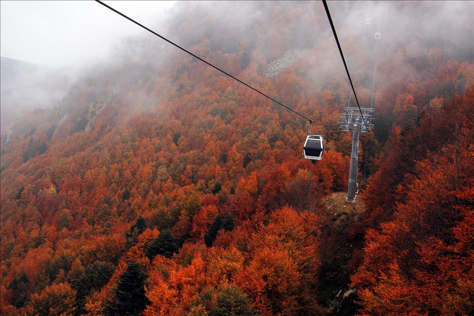 Dünyanın tek halatlı en uzun hatlarından birine sahip olan ve Bursa'dan Uludağ'a alternatif ulaşım sağlayan teleferikle yolculuk sonbaharda yolcularına renk cümbüşü sunuyor. ( Mustafa Bikeç - Anadolu Ajansı )Mustafa Bikeç