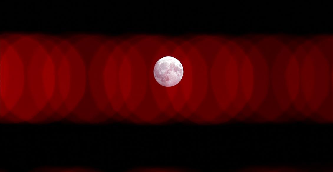 Akşam saatlerinde Ankara semalarında beliren dolunay, ışıklı tabelalarla birlikte farklı görüntüler oluşturdu. ( Evrim Aydın - Anadolu Ajansı )Evrim Aydın