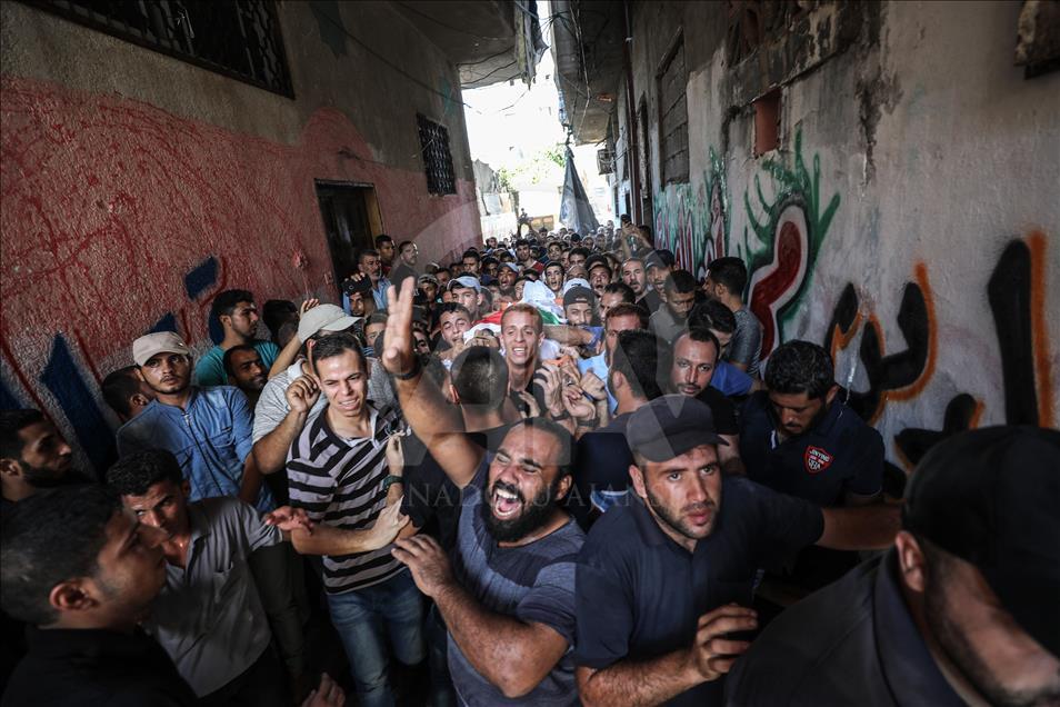 Abluka altındaki Gazze Şeridi sınırında düzenlenen barışçıl "Büyük Dönüş Yürüyüşü" gösterileri sırasında dün İsrail askerlerinin açtığı ateş sonucu şehit olan Filistinli Muhammed Fayiz Abu Sadek (21) çin Gazze'nin Al-Shati Kampında cenaze töreni düzenlendi. Muhammed'in naaşı, omuzlarda taşınarak son yolcuğuna uğurlandı. ( Ali Jadallah - Anadolu Ajansı )Ali Jadallah
