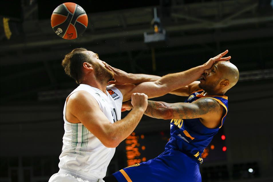 Basketbolda THY Avrupa Ligi'nin 14. haftasında Darüşşafaka Tekfen, Rusya temsilcisi Khimki ile deplasmanda karşılaştı. Bir pozisyonda Darüşşafaka Tekfen oyuncusu Oguz Savas (solda) rakibi ile mücadele etti.