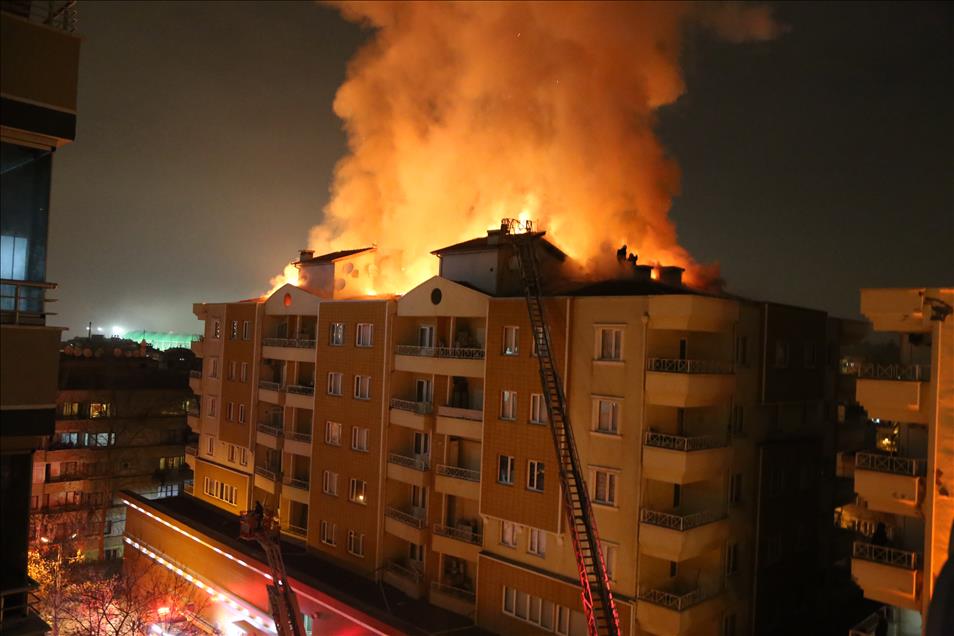 Bursa'nın Osmangazi ilçesinde, bir binanın çatı katında yangın çıktı. İtfaiye ekiplerinin yangına müdahalesi devam ediyor. ( Cem Şan - Anadolu Ajansı )Cem Şan