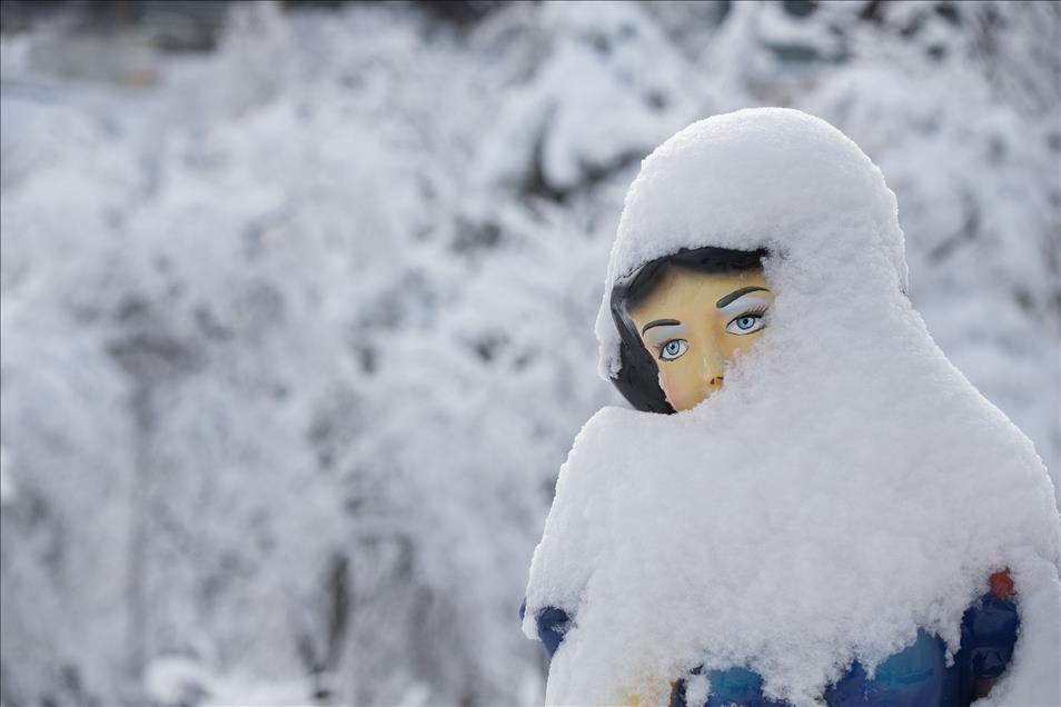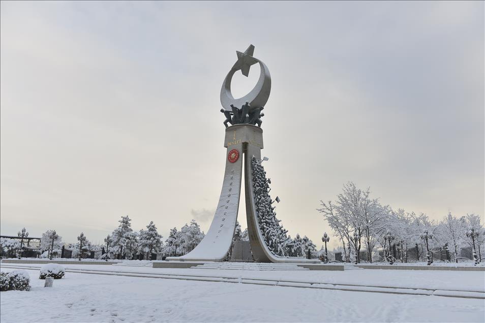 Ankara'da etkili olan kar yağışın ardından parklar beyaza büründü. ( Mehmet Ali Özcan - Anadolu Ajansı )Mehmet Ali Özcan