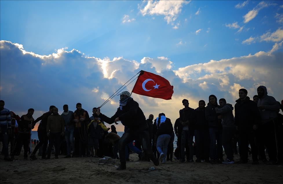 İsrail'in yaklaşık 12 yıldır aralıksız şekilde Gazze'ye kara, hava ve denizden uyguladığı ablukanın kaldırılması talebiyle her pazartesi günü gerçekleştirilen deniz eylemine çok sayıda Filistinli katıldı. Gazze'nin kuzeyinde İsrail sınırında yer alan kıyı bölgesinde düzenlenen eyleme, İsrail güçlerinin müdahale etmesi üzerine Filistinliler, sapanla taş atarak karşılık verdi. Bazı göstericiler ellerinde Türk bayrağı taşıdı.