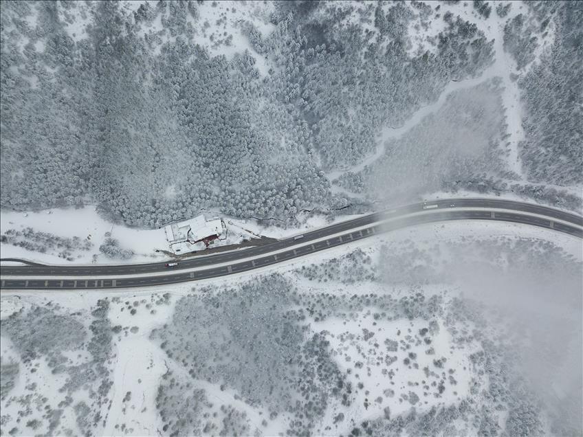 Çorum'da kar yağışının ardından beyaza bürünen doğa güzel görüntüler oluşturdu. Türkiye'nin önemli kara yolu geçiş güzergahlarından Çorum'da, etkili kar yağışı nedeniyle Samsun-Ankara kara yolunda zaman zaman aksamalar yaşanıyor. ( Gazi Nogay - Anadolu Ajansı )Gazi Nogay