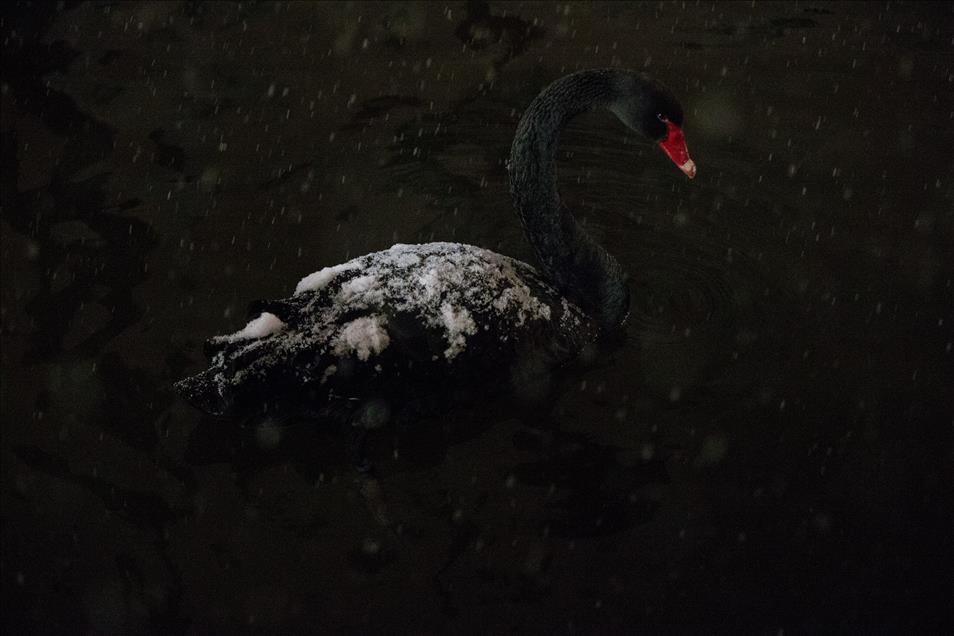 Ankara'da akşam saatlerinde kar yağışı etkili oldu. Kuğulu parktaki kuğular kar altında yüzdü. ( Mehmet Ali Özcan - Anadolu Ajansı )Mehmet Ali Özcan