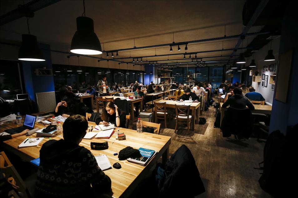 Ankara'da üniversite yıllarında gece ders çalışacak ortam bulamamaktan şikayet eden iki arkadaşın hayalini gerçeğe dönüştürmek için kurduğu ve zamanla sayıları artan kütüphane tarzındaki kafeteryalar, özellikle üniversite öğrencilerinin ilgisini çekiyor. ( Doğukan Keskinkılıç - Anadolu Ajansı )Doğukan Keskinkılıç