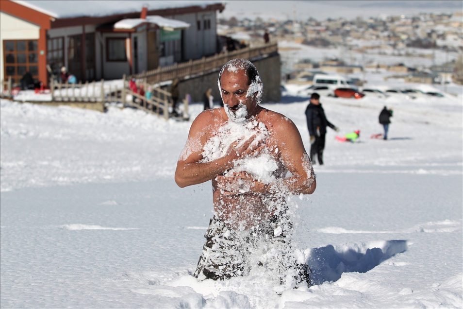 Van'ın Gevaş ilçesindeki Abalı Kayak Merkezi, geçen hafta etkili olan yağışların ardından kar kalınlığının beklenen seviyeye ulaşmasıyla sezonu açtı. Toplam 2,5 kilometrelik telesiyej hattı ve pistleriyle yerli ve yabancı turistleri cezbeden kayak merkezinde yoğunluk oluşturan kayakseverler ve kızakla kayan çocuklar, renkli görüntülere sahne oldu. Vatandaşlardan Faik Cengiz, kar yağışı ve sezon açılışını yarı çıplak karda yüzerek karşıladı. ( Necat Hazar - Anadolu Ajansı )Necat Hazar