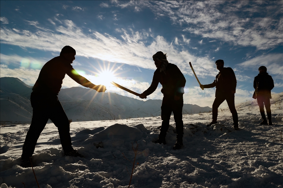 Van'ın Gevaş ilçesinde "topa garane" adıyla bilinen beyzbol oyunu, kış aylarında kırsal mahallelerdeki vatandaşların en büyük eğlencesi arasında yer alıyor. Karla kaplı alanda 6'şarlı iki takım halinde bir sopa ve at kılından yapılan topla oynanan oyun, yöre halkının en sevdiği oyunların başında geliyor. ( Özkan Bilgin - Anadolu Ajansı )Özkan Bilgin