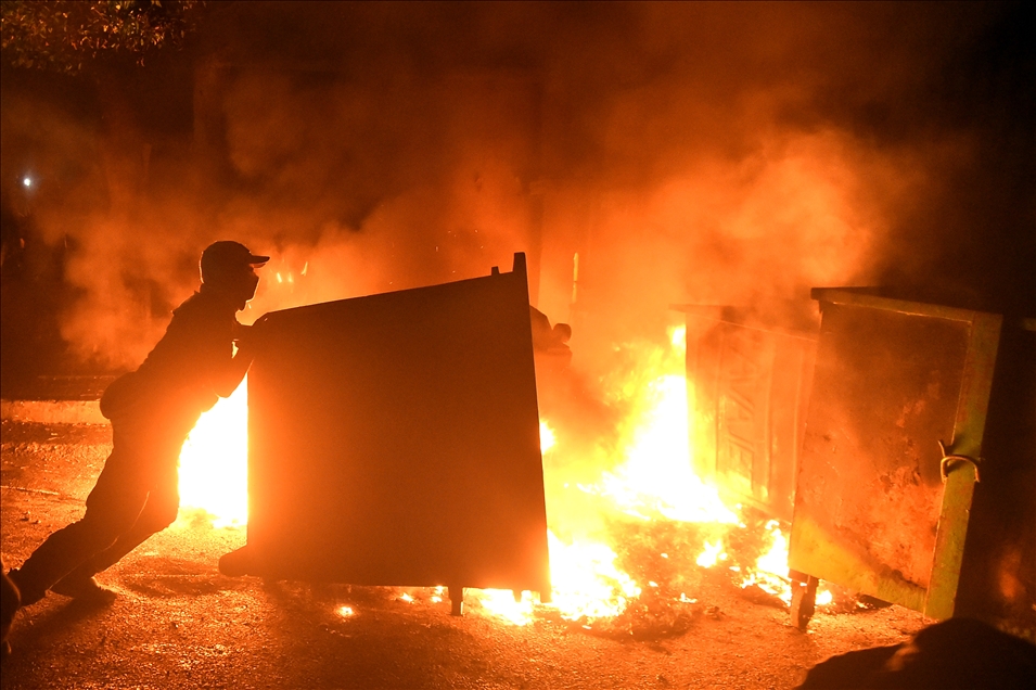 Lübnan’ın kuzeyindeki Trablusşam kentinde, ekonomik kriz ve yeni tip koronavirüs (Kovid-19) karantinasına karşı 25 Ocak’ta başlayan protestolar devam ediyor. Trablusşam kentindeki protestolarda göstericiler ile güvenlik güçleri arasında çatışma yaşandı. Bazı göstericiler, ateş yakarak bazı yolları kapatı. ( Houssam Shbaro - Anadolu Ajansı )Houssam Shbaro
