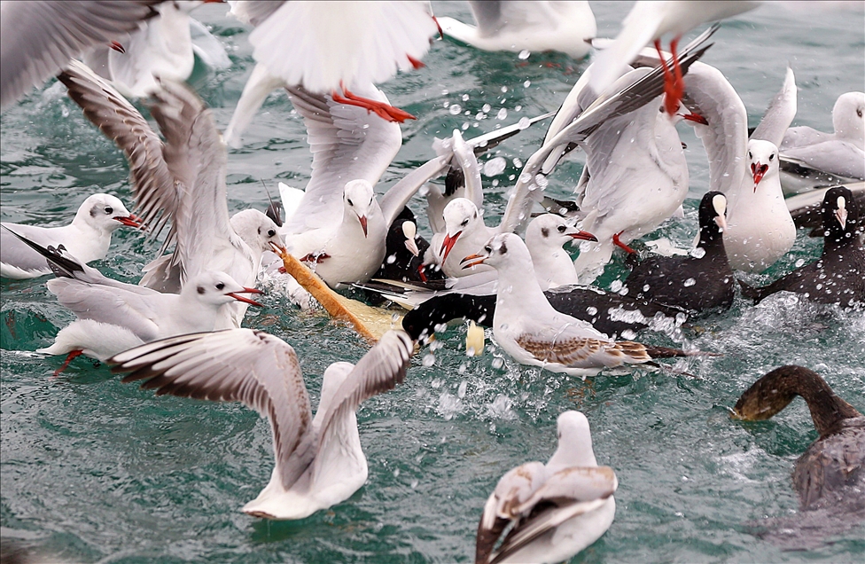 Trabzon'da kuvvetli rüzgar hayatı olumsuz etkiledi. Sahilde yiyecek bulma sıkıntısı çeken martı ve karabataklar ise vatandaşların attığı ekmeklerle beslendi. Kuşların yiyecek mücadelesi renkli görüntüler oluşturdu.