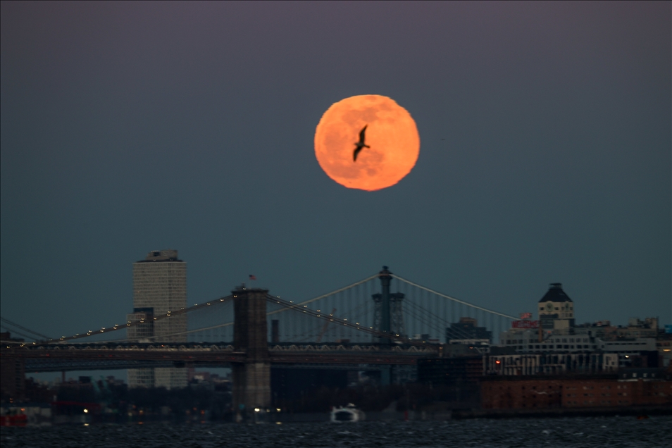 ABD'de ''Kurt Ayı'' olarak da isimlendirilen yılın ilk dolunayı, New York kentindeki Brooklyn Köprüsüyle güzel görüntü oluşturdu. ( Tayfun Coşkun - Anadolu Ajansı )Tayfun Coşkun