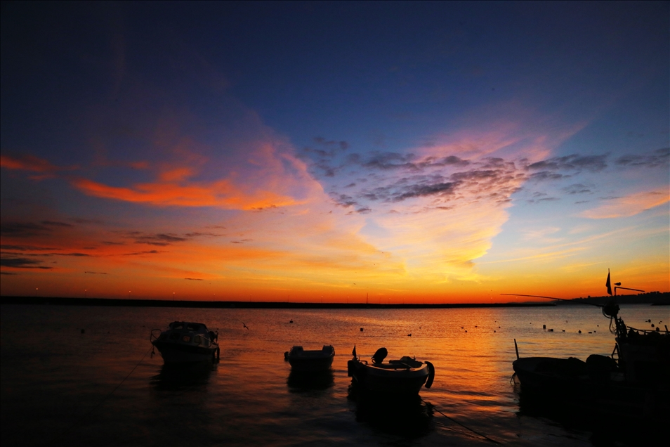 Samsun'da Atakum ilçesi sahilinde bulunan kayıklar, gün doğumu ve martılarla birlikte güzel görüntü oluşturdu. ( Mehmet Kumcağız - Anadolu Ajansı )Mehmet Kumcağız