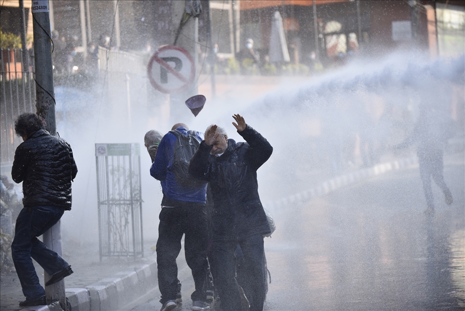 Nepal’in başkenti Katmandu’da bir araya gelen göstericiler, Başbakan Khadga Prasad Oli’nin önerisi doğrultusunda parlamentonun feshedilmesine karşı gösteri düzenledi. Baluwatar semtindeki protesto sırasında polis ekipleri, göstericilere tazyikli su ile müdahale etti. ( Narayan Maharjan - Anadolu Ajansı )Narayan Maharjan