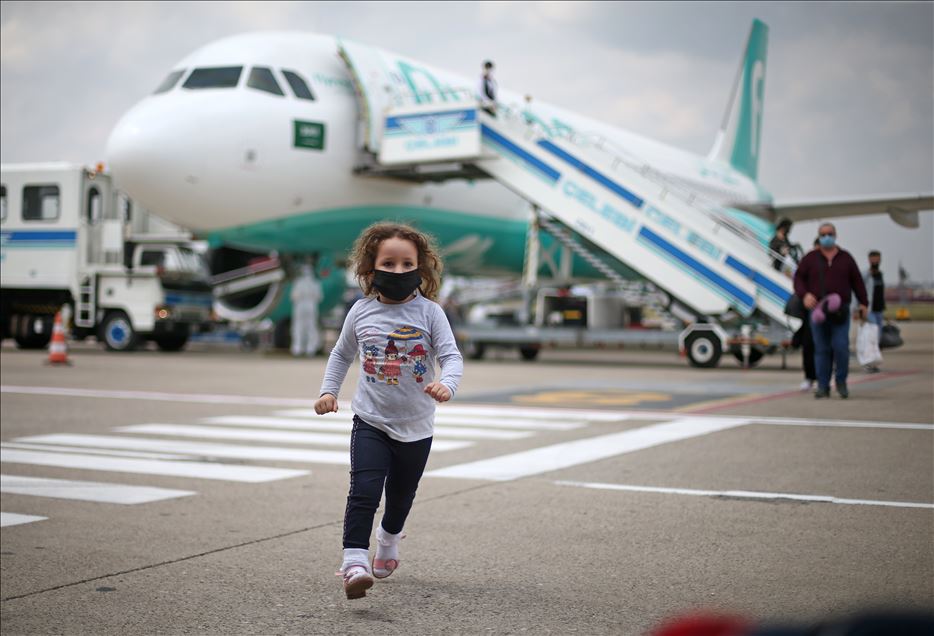 Suudi Arabistan'daki 168 Türk vatandaşı, yeni tip koronavirüs (Kovid-19) önlemleri kapsamında Türkiye'ye getirildi. Türkiye Cumhurbaşkanı Recep Tayyip Erdoğan'ın talimatı, Cumhurbaşkanı Yardımcısı Fuat Oktay'ın koordinasyonu ve ilgili bakanlıkların ortak çalışmasıyla başlatılan tahliye operasyonu kapsamında, Suudi Arabistan'daki 168 Türk vatandaşını taşıyan uçak Adana Havalimanı'na indi. ( İbrahim Erikan - Anadolu Ajansı )İbrahim Erikan
