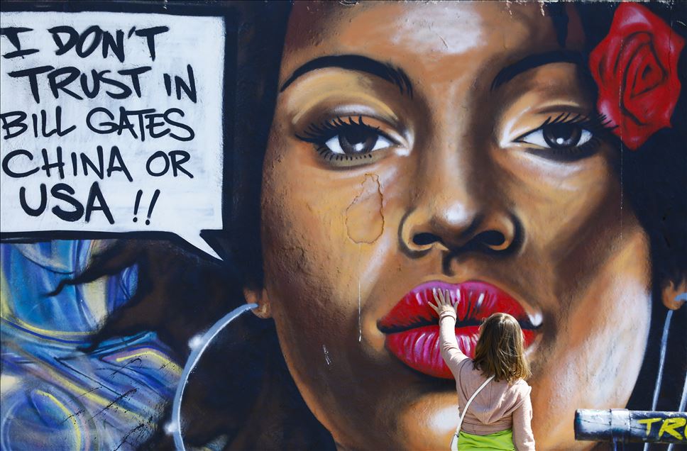 Almanya'nın başkenti Berlin'de koronavirüs (Kovid-19) salgınıyla nedeniyle en sakin günlerini geçiren turistik Mauer Park'taki duvarlara koronavirüs ile ilgili grafitiler çizildi. Bir grafitide "Bill Gates'e Çin'e ve Amerika'ya güvenmiyorum." yazılması dikkati çekti. ( Abdulhamid Hoşbaş - Anadolu Ajansı )Abdulhamid Hoşbaş