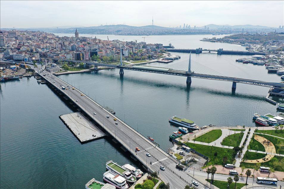 Dünyanın en kalabalık şehirlerinden olan, tarihi ve turistik mekanlarıyla milyonları ağırlayan İstanbul'da Unkapanı Köprüsü ve Haliç Metro Köprüsü'nün, yeni tip koronavirüs (Kovid-19) salgınını önleme çalışmaları kapsamında alınan kararlara uyulmasıyla boş olduğu görüldü. ( Muhammed Enes Yıldırım - Anadolu Ajansı )Muhammed Enes Yıldırım