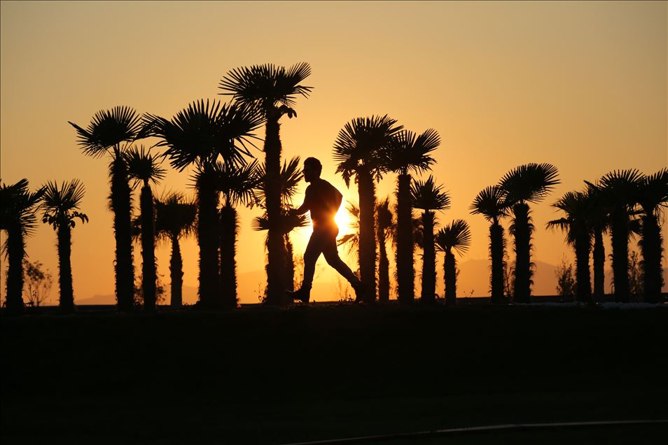 Manisa'nın Yunusemre ilçesinde gün batımı ve palmiye ağaçlarının silüeti güzel görüntü oluşturdu. ( Haluk Satır - Anadolu Ajansı )Haluk Satır